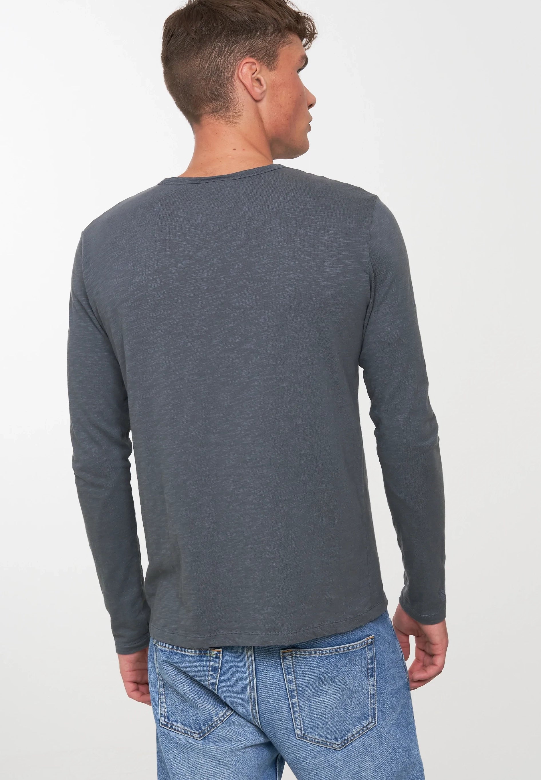 The Maca from Recolution impresses as a timeless long-sleeve shirt made from soft organic cotton. With its slub structure and classic crew neck, the basic long-sleeve shirt becomes a versatile companion for everyday life. Thanks to the regular fit, the crew neck long-sleeve shirt fits comfortably and stylishly. The GOTS certificate guarantees the highest ecological standards throughout the entire supply chain, while the PETA approved vegan label confirms the absence of animal components. Made in Portugal, this casual long-sleeve shirt combines sustainability and comfort in a simple design.