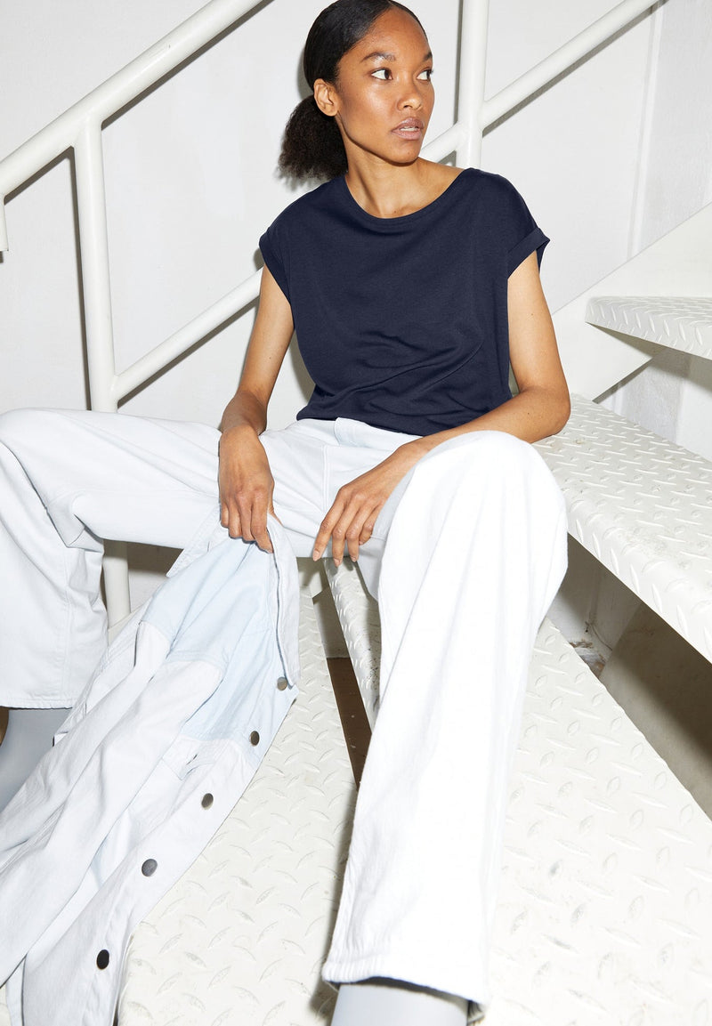 - Einfarbiges Basic T-Shirt aus mittelschwerem Jersey-Stoff