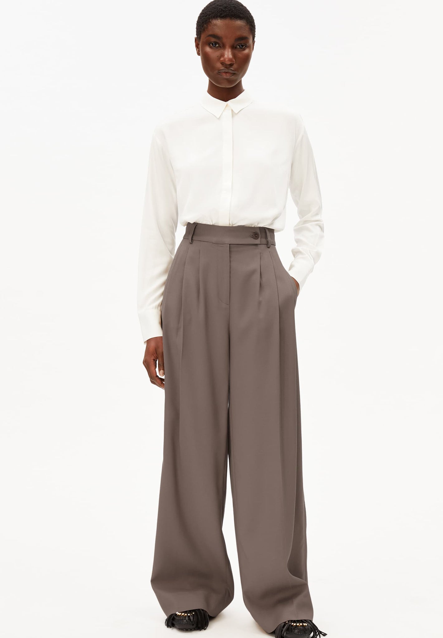 - Einfarbige Langarm-Bluse aus mittelschwerem Webstoff