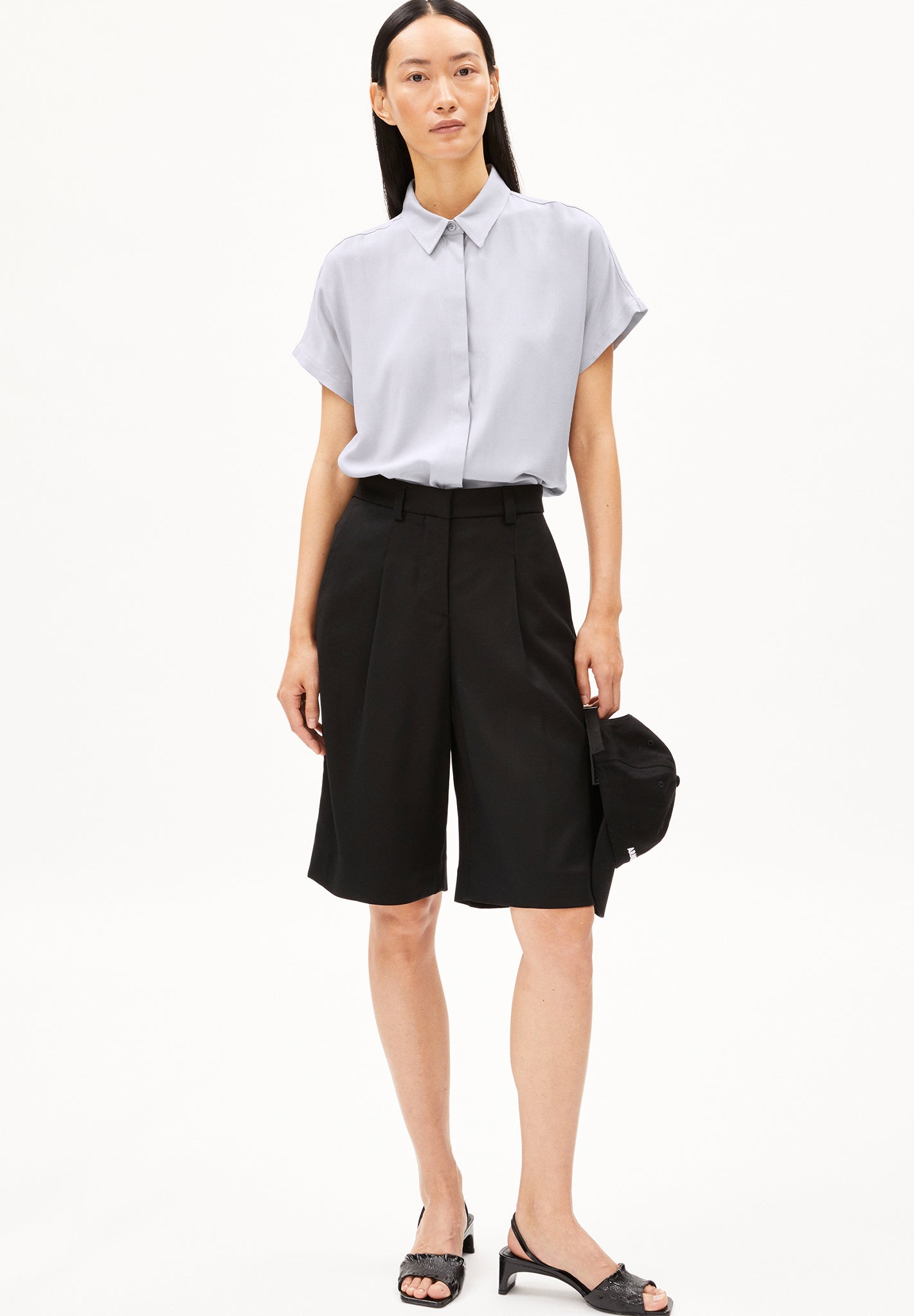 - Einfarbige Bluse aus mittelschwerem Webstoff