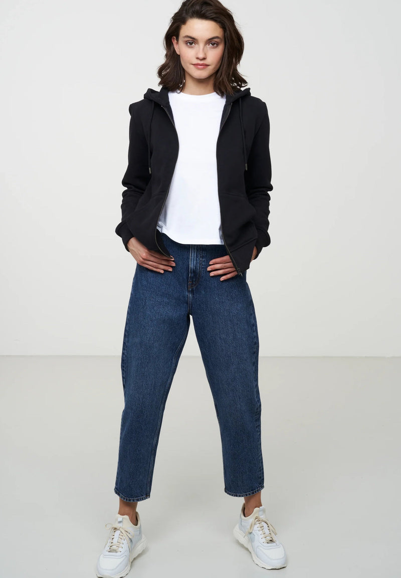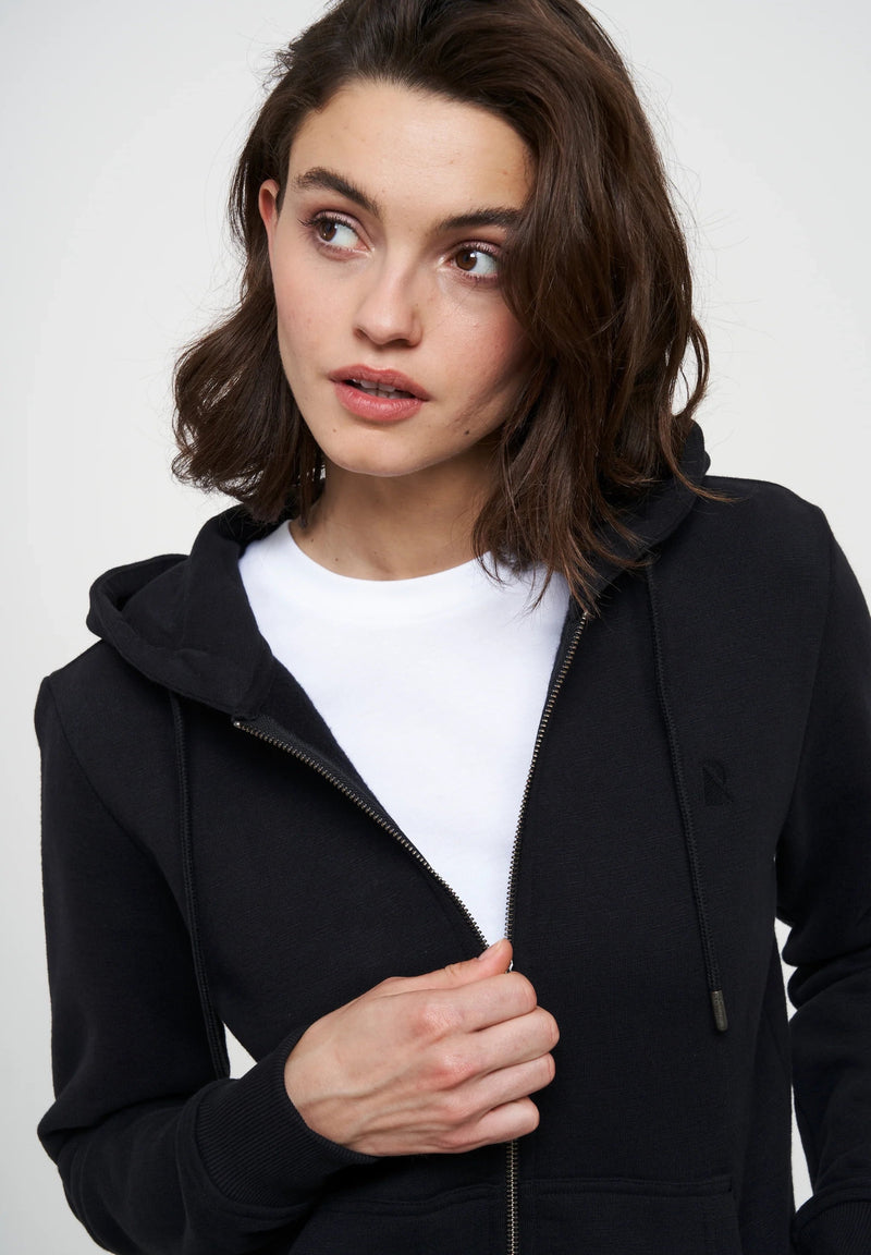 Die Dahlia von Recolution ist die perfekte Kapuzenjacke für deinen Kleiderschrank. Hergestellt aus weicher Bio-Baumwolle, vereint sie Komfort und Funktionalität in einem stilvollen Design. Ihr Regular Fit sorgt für entspannten Tragekomfort, während praktische Features wie die große, doppellagige Kapuze mit Kordelbändchen und Metallabschlüssen, Kängurutaschen sowie breite Rippbündchen an Saum und Ärmeln die Freizeitjacke besonders alltagstauglich machen. Hochwertige Details wie der Metall-Reißverschluss und die dezente Logo-Stickerei auf der Brust runden das Design ab. Diese Sweatshirtjacke ist ein unkompliziertes Basic, das in jeder Garderobe seinen Platz findet. Außerdem ist sie vegan und überzeugt durch ihre nachhaltige Produktion.