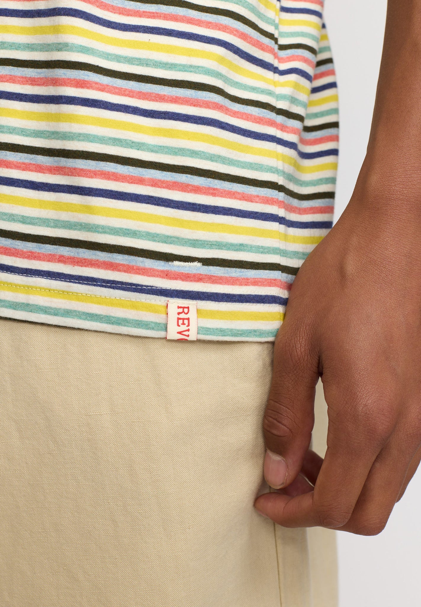 Das 1383 Regular T-Shirt von Revolution ist ein gestreiftes Basic, das durch seine hochwertige Verarbeitung und den vielseitigen Look überzeugt. Mit seinem Regular Fit, dem klassischen Rundhalsausschnitt und den kurzen Ärmeln ist dieses T-Shirt ein idealer Begleiter für den Alltag. Die weiche Materialveredelung sorgt nicht nur für angenehmen Tragekomfort, sondern auch für besondere Stabilität und Langlebigkeit. Ein gerippter Kragen sowie Saum und Ärmelbündchen mit robustem Zwillingsnadelstich verleihen dem Shirt ein detailreiches Finish und sorgen dafür, dass es seine Form auch nach häufigem Tragen und Waschen behält. Die frischen Streifen machen es leicht kombinierbar und bringen Abwechslung in deine Garderobe.