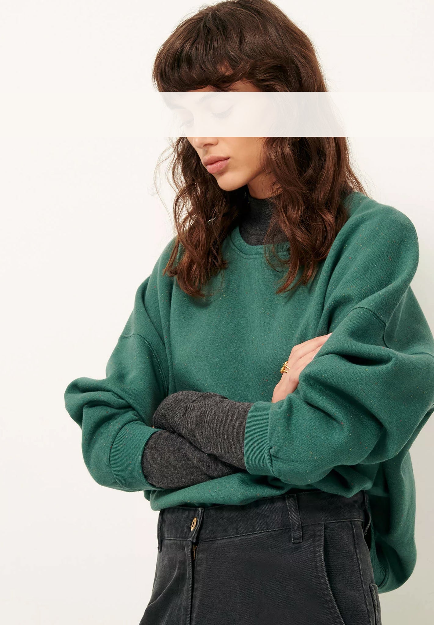 - Oversized-Sweatshirt aus meliertem, gepunktetem Molton