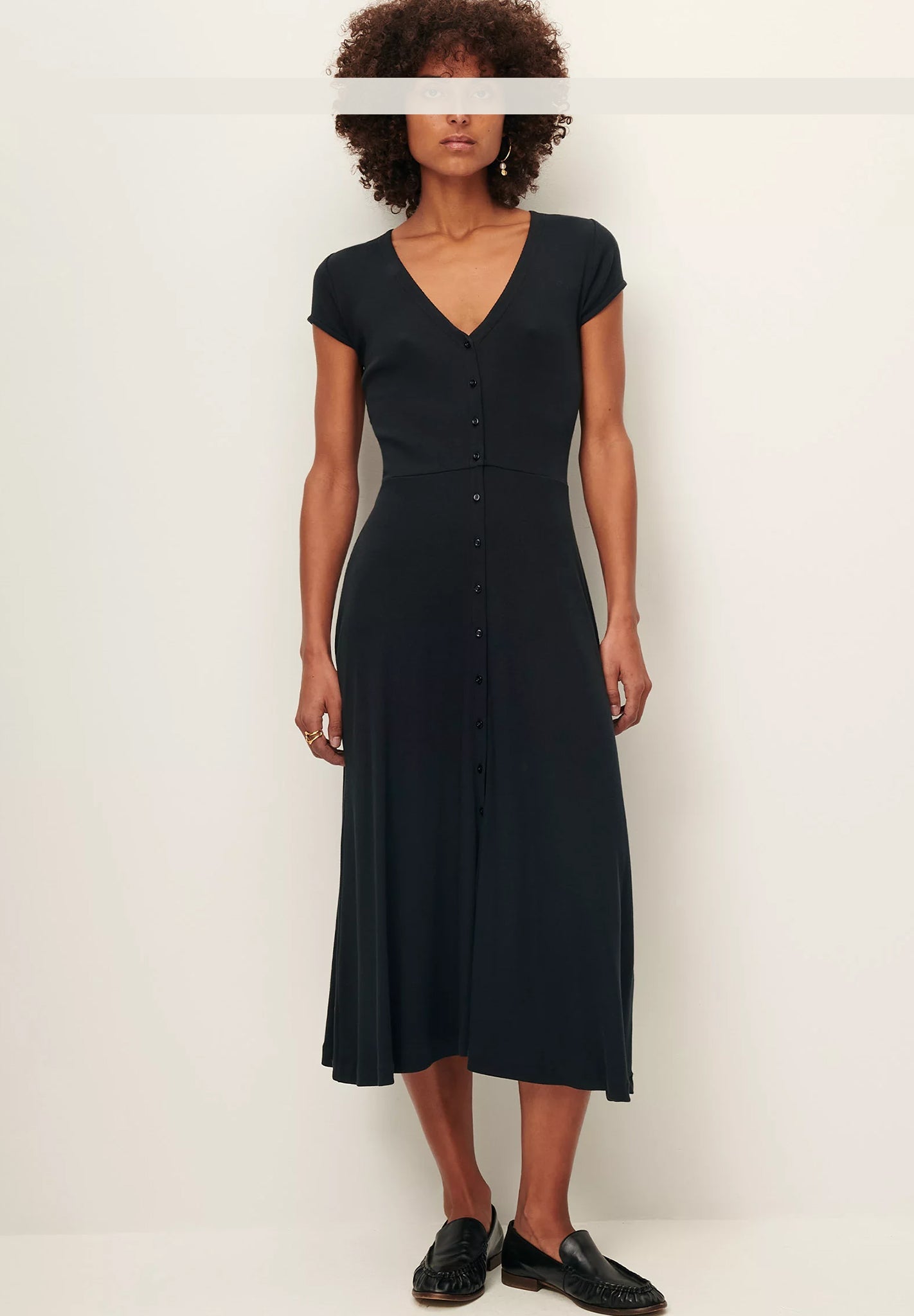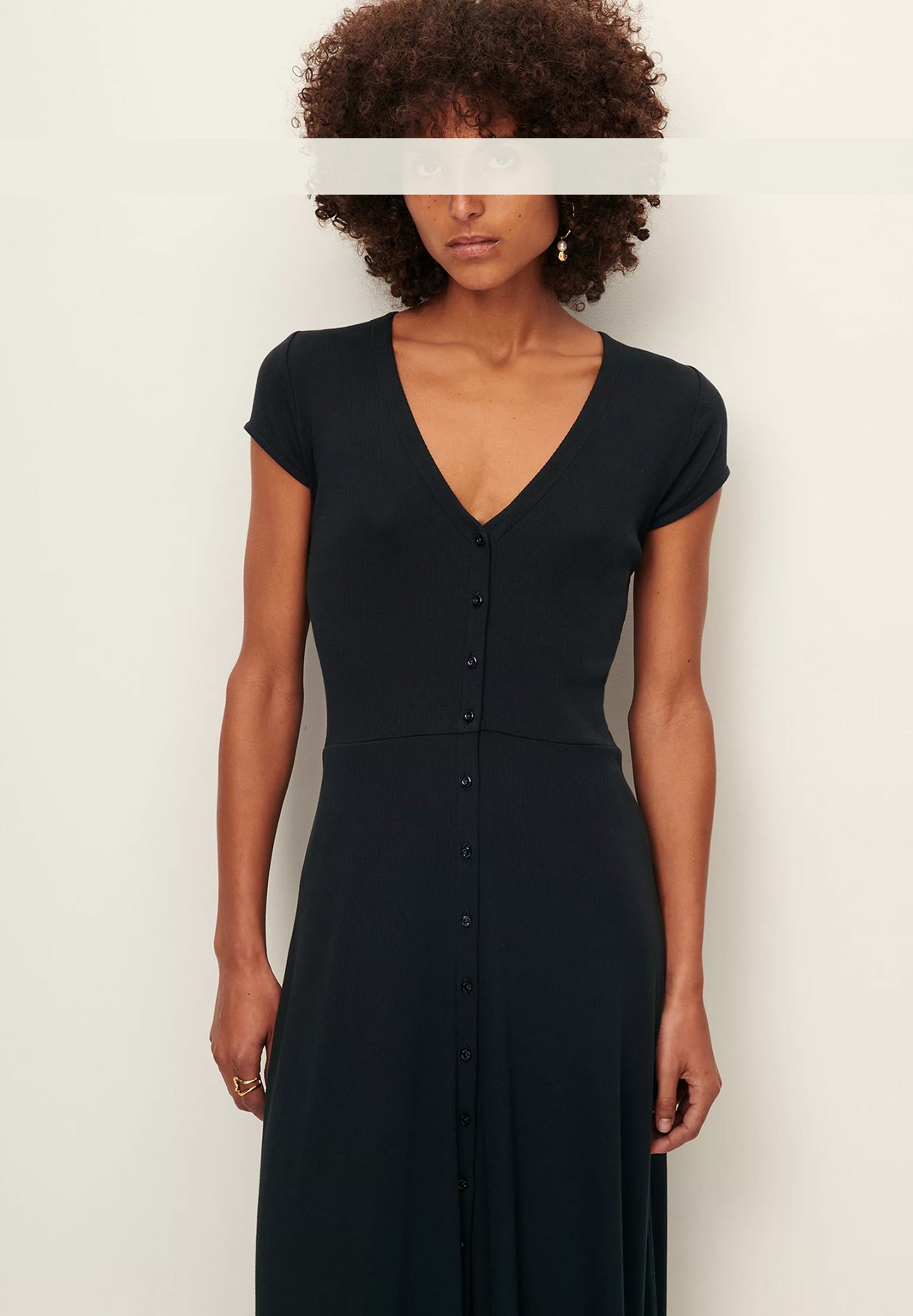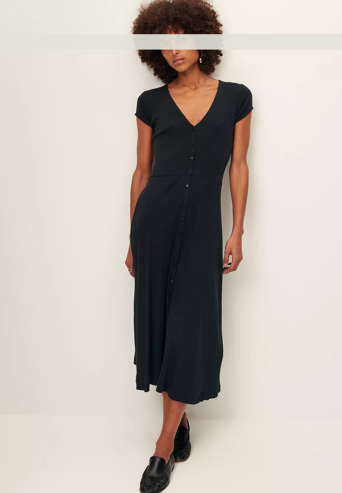 - Midikleid mit V-Ausschnitt aus gestricktem Rippjersey